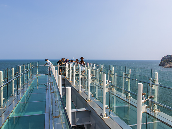 오륙도 해상 35m 높이의 절벽에 있는 통유리로 전망대입니다.발밑의 유리바닥은 '하늘 위를 걷다'라는 이름에 걸맞게 마치 바다 위를 걷는 듯한 느낌을 줍니다.