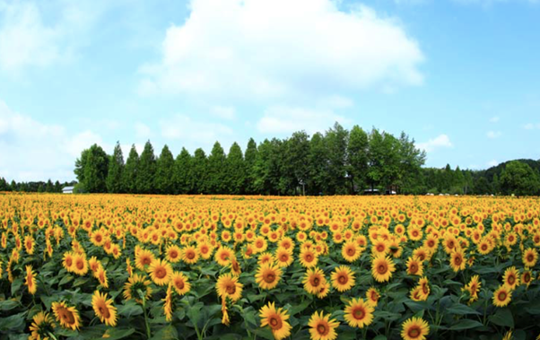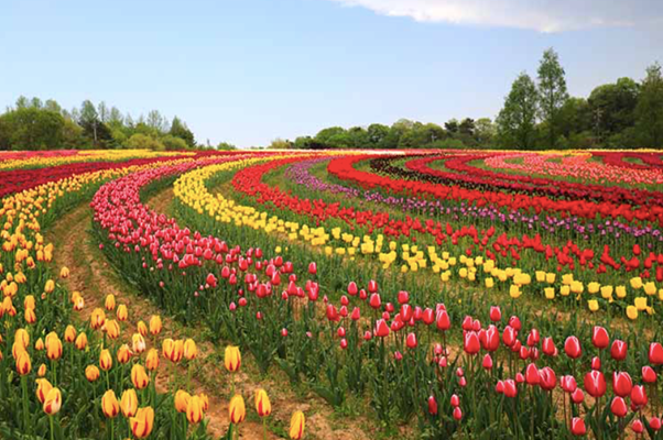 봄에는 300여 종 75만 송이의 튤립, 여름에는 50여 종 110만 송이의 해바라기, 3만 송이의 살비아, 가을에는 550여 종 7,500여 송이의 달리아와 1만 2,000여 송이의 맘(국화)이 피어 압권의 광경이 펼쳐집니다.