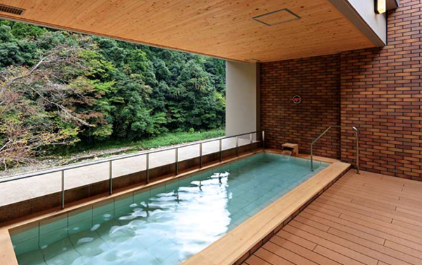「유라이 롯지」에서는, 대욕장·노천탕 모두 원천 내기 탕과 청류·수내천의 경관을 즐길 수 있습니다.당일 목욕도 가능합니다.