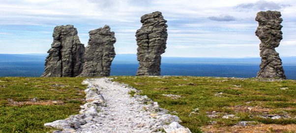 현지인들로부터 '튀어 나온 '라고 불리고 있는 만푸뇰의 거석군은 트로이츠코 페철스키 지역에 있습니다. 기적적인 돌기둥은 수백만년에 걸쳐 강풍과 강수, 그리고 혹한에 의해 무너져내린 산들의 잔해로 알려져 습니다.  높이 30~40미터의 7개의 거대한 돌기둥이 늘어선 모습은 장관으로, 러시아의 7 불가사의의 하나로 선택되었습니다.