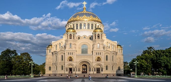 바다의 대성당은 20세기 해병들을 위해 지어진 비잔츠 양식의 성당으로 크론슈타트의 상징물로 인기 있는 관광 명소입니다