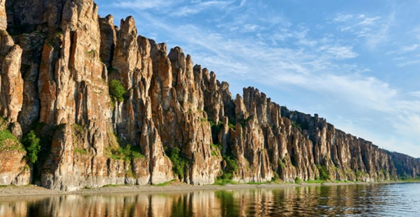 야쿠트의 레나 강가에는 길이 80km 걸쳐 능선이 늘어서 있습니다. 2012년에는 유네스코가 러시아의 세계자연유산으로 등재한 돌기둥군은 높이가 200미터에 달하는 곳도 있을 정도랍니다.