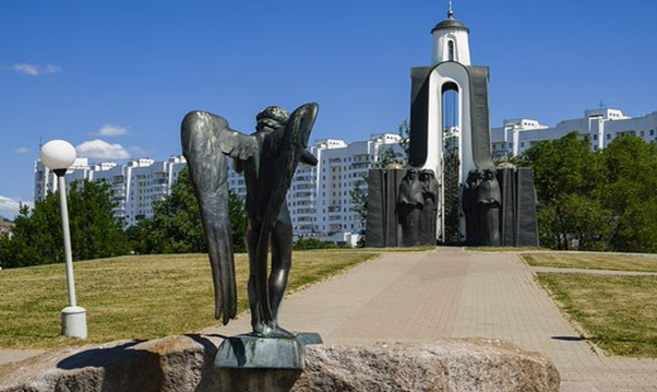 여섯 번째로 소개드릴 벨라루스의 관광지는 "Memorial Complex Brest Hero Fortress". 유네스코의 세계유산으로 등록된 러시아 제국에 의해 지어진 요새로 제2차 세계대전 때 사용되었던 곳입니다. 부지 내에 있는 하얀 궁전으로 프레스톨리토프스크 협약이 체결된 역사도 있으며 입구에는 소비에트의 상징인 커다란 별 모뉴멘트가 있습니다.안으로 들어가면 거대한 전사의 얼굴 상과 전사의 이름이 적힌 메모리얼 플레이트가 있습니다.