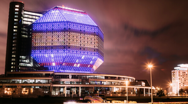 다섯번째로 소개해드릴 곳은 '벨라루스 국립도서관'입니다. 민스크에서 특히나 독특한 모습을 한 건물이 바로 벨라루스 국립도서관이에요.