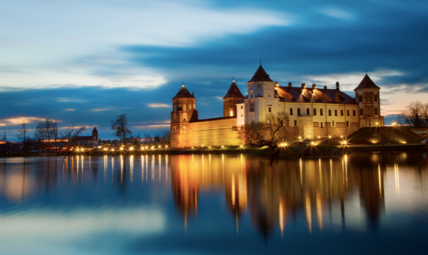 첫번째로 추천 드리는 장소는 '미르성'입니다. 15~16세기에 지어진 고딕 양식의 장식이 아름다운 작은 성입니다. 중세 리투아니아 대공국에 의한 소유를 필두로 나폴레옹 전쟁에 의한 손괴, 나치군에 의해 유대인 강제 수용소로 이용되는 등 이 나라의 격동의 역사와 함께 시대의 물결에 계속 휩쓸려 왔습니다. 그 기억을 간직하듯 현재는 벨라루스 루블 지폐 디자인에도 사용되고 있습니다.