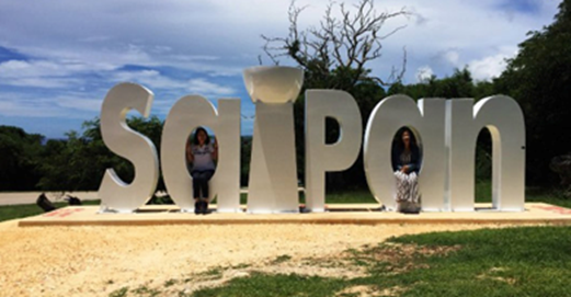 섬 북부에 있는 'Saipan' 오브제. 'i'가 마리아나 제도에서 볼 수 있는 산호석 돌기둥 '라테 스톤'과 같은 형태를 띠고 있습니다.사진 촬영하기 좋은 장소입니다.