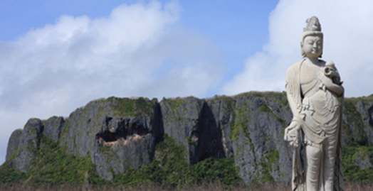 해발 250m 정도의 낭떠러지 절벽. 절벽에서는 푸른 바다와 짙은 녹색의 멋진 경치가 펼쳐져 있습니다. 제2차 세계대전에 많은 사람들이 이곳에서 목숨을 잃은 곳이기도 해서 지금은 평화공원으로 조성되어 있고 많은 위령과 관음상이 세워져 있습니다.