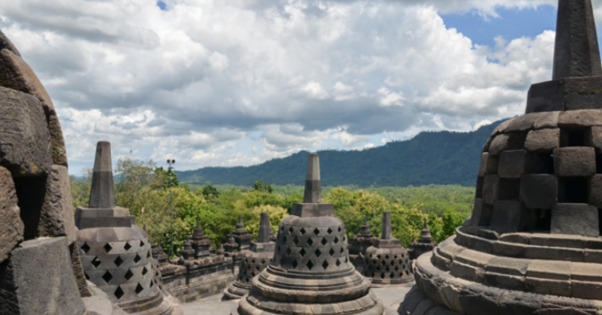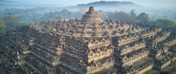 인도네시아 자바섬에 있는 '보로브두르 사원 유적'은 세계 최대 규모의 불교 사원이자 대승 불교 유적입니다.