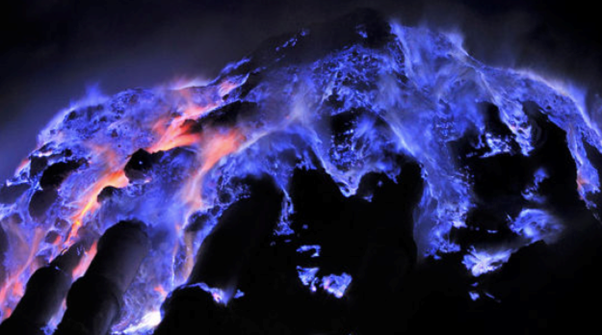이제 화산은 뭐니뭐니해도 화구 부근에서 불타고 있는 유황이 만들어내는 신비로운 파란 불꽃을 볼 수 있습니다!