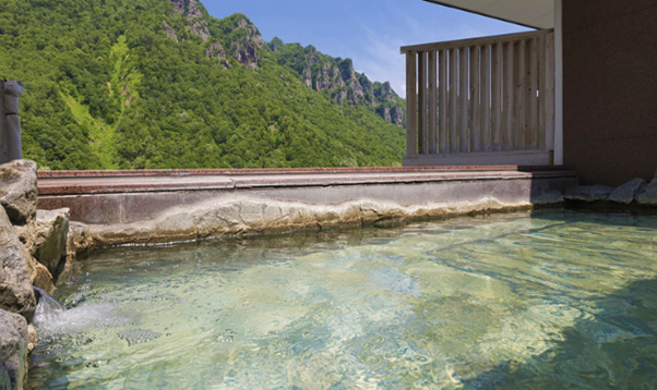 다이세쓰산 국립공원 내에 위치한 층운협은 이시카리 강을 따라 24km에 걸쳐 절벽이 이어져 있는 아름다운 협곡. 그 골짜기 바닥에 있는 층운협 온천은 무색 투명한 단순 유황 온천수를 즐길 수 있습니다.