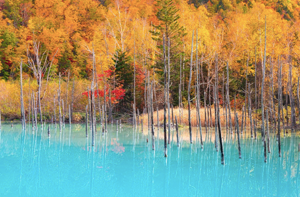 그 대비의 아름다움으로 절대적인 인기를 자랑하는 백금푸른 연못.광물을 포함한 물과 연못의 물이 서로 섞이면서 발생하는 입자가 있으며 그 입자에 햇빛이 반사되면 파랗게 보인다고 합니다! 깨끗한 파란색을 볼 때 가장 추천할 만한 것은 초여름 바람이 없는 맑은 아침 일찍입니다.