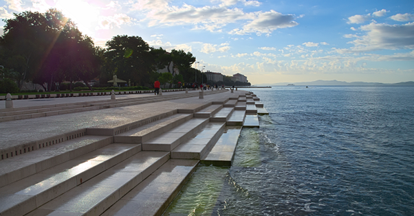 아드리아해 연안 마을 자도르에 있는 '바다의 오르간'. 언뜻 보기에는 그저 하얀 계단이 있습니다만, 이 계단 아래에 묻혀 있는 관 속을 바닷물이 통과함으로써 환상적인 음색을 자아낼 수 있습니다.