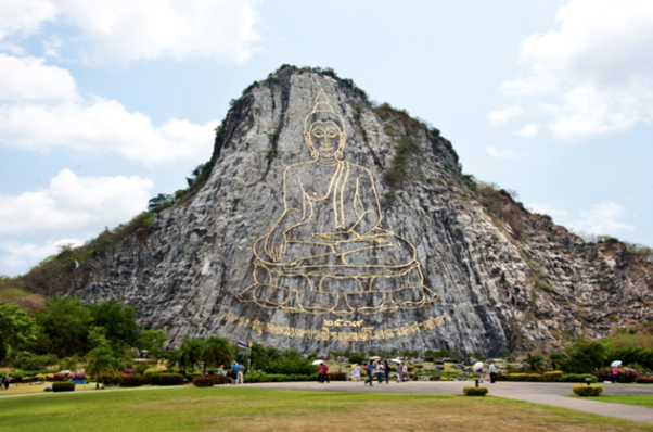 푸미폰 전 국왕 재위 50주년을 기념해 1996년 거대한 바위에 새겨진 대불벽화가 왓 카오시찬. 크기는 높이가 약 130m로 압권입니다. 대불벽화 주위는 남국답게 수목과 꽃들이 풍성해 태국다움을 찾아 산책하기에 좋은 곳입니다!