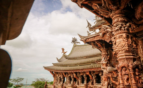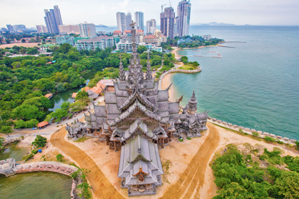 라차베토 곶의 선단에 서 있는 '생크추어리 오브 트루스'. 목조건물은 착공으로부터 30년 정도 지났습니다만, 바닷바람에 휩쓸려 깊은 경관을 자아내고 있습니다. 내부에는 수많은 나무 부조가 있어 숨을 삼킬 만큼 아름답고 섬세합니다. 파타야에서 관광을 한다면 꼭 가보시 길 추천 드려요