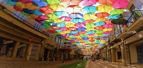 2012년 시작된 '아게다 우산 축제'는 매년 7월부터 2개월간 개최되는 아트 페스티벌 입니다. 아게다는 리스본에서 전철로 3시간 반정도 걸리는 작은 마을이며, 매년 우산축제 때면 국내외 관광객이 많이 찾아옵니다.