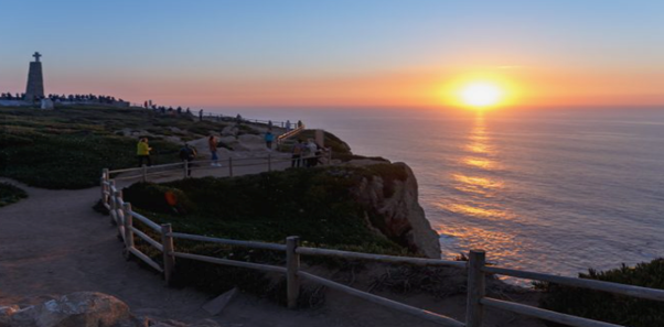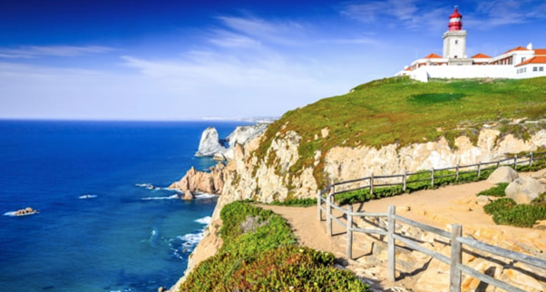 로카곶은 유라시아 대륙의 최서단입니다. 낭떠러지 절벽에는 시인 루이스 데 카몬이스가 지은 시 '이곳에 땅끝 바다가 시작된다'라는 문구가 새겨진 기념비가 있으며, 그 뒤로는 대서양이 멀리 펼쳐져 있습니다.